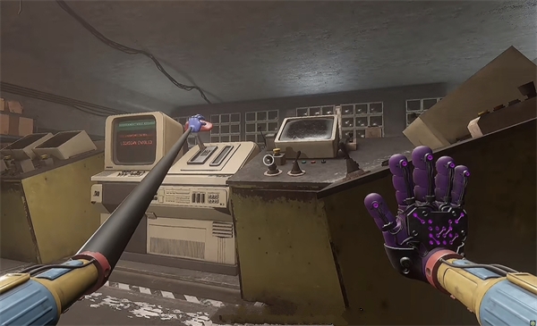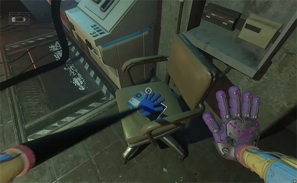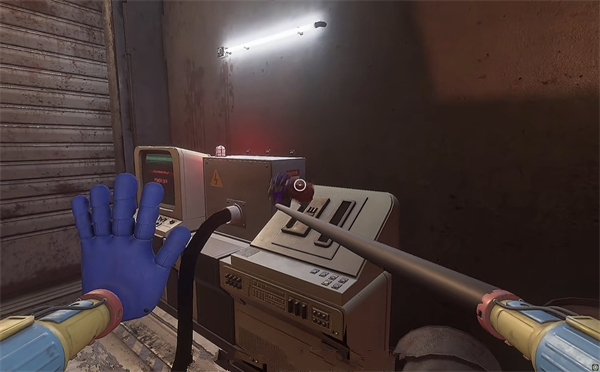6、开门后走进去,里面还有一个开关,拉下后,使用蓝色手臂与前面的开关互动,需要触发三个开关才能通电。